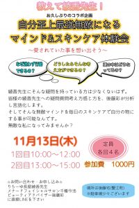 11月講座、プライベートレッスンは空きわずかとなっております。12月以降のご予約も承っておりますのでお気軽にお問い合わせくださいませ。